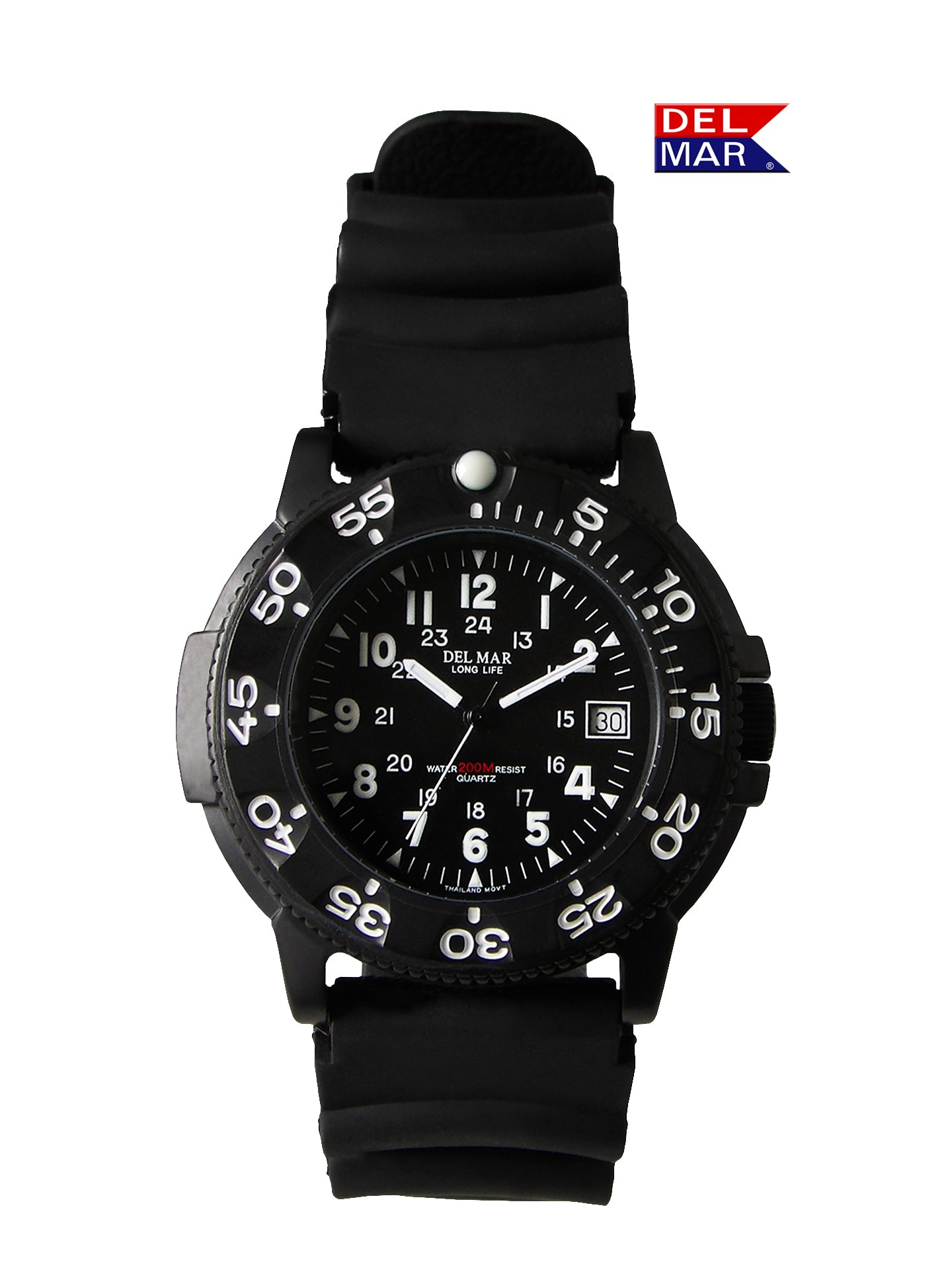 The Del Mar Sand Key 50279 features a bold black dial, 200-meter water resistance, and a lightweight build designed for daily wear, travel, and time on the water.